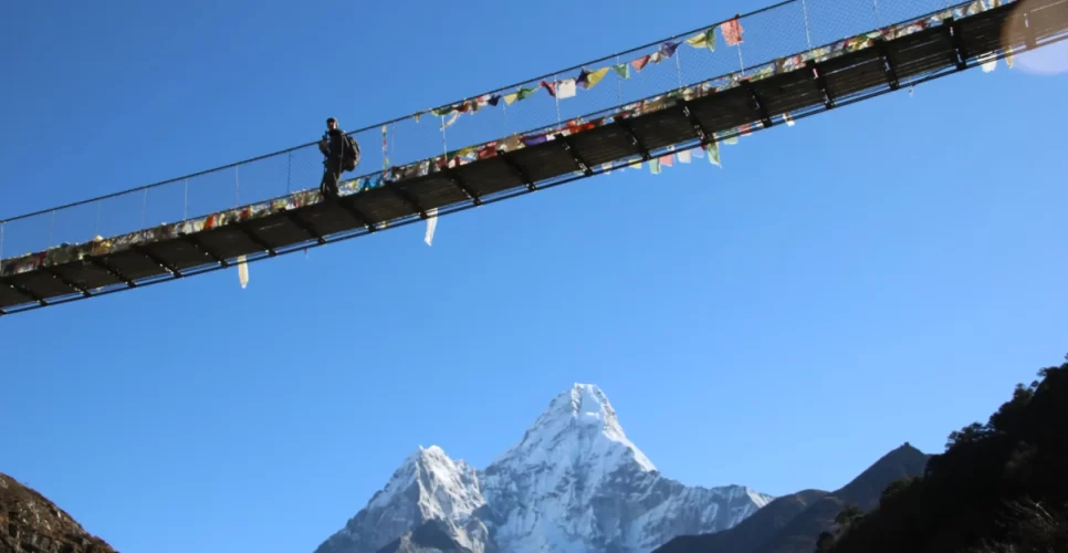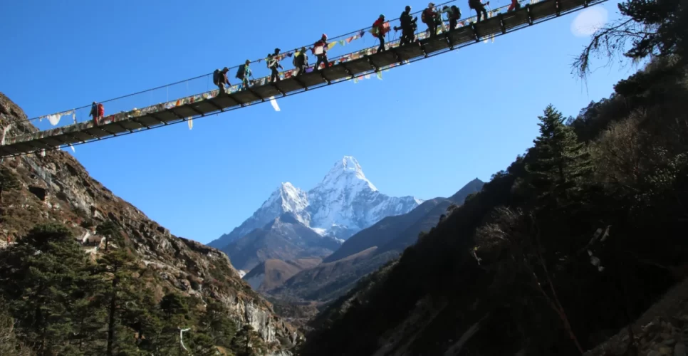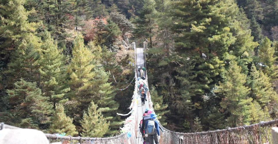 This is the last day for our Everest three passes trek. We begin our trekking through the steep trail from Namche Bazaar. Checking out from the national park counter, we reach Monjo and head further, crossing the suspension bridges.