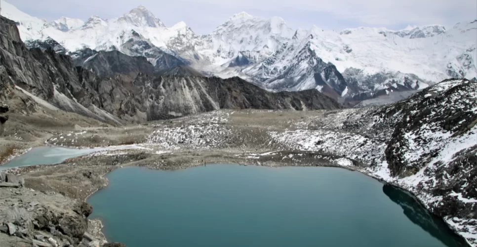 Everest mountain range with Gokyo Lake