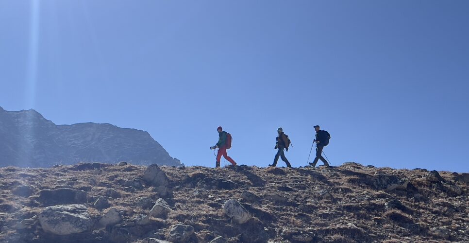 After breakfast, early in the morning, we walk through the steep climbing route. Today is going to be one of the toughest days of our Everest three passes trek trip.