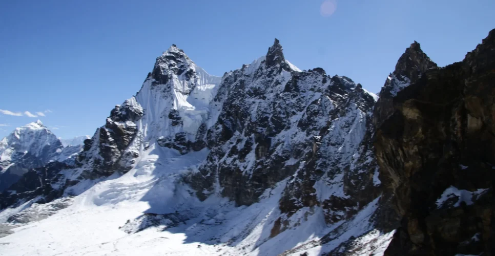 The hike goes through westward of Dzongla, ascending through the trail in between massive rocks. Cho La pass remains snowy for most of the year. From the top, the view of Ama Dablam, Cholatse, and others mountains is rewarding.