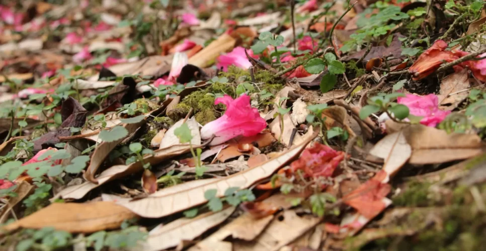 • Beautiful forest lined with tall rhododendron, magnolia, oaks, pines, and fir trees