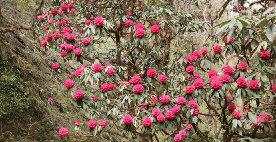 Ghorepani Poon Hill Trek trail is best during the spring season when the flowers are in full bloom. A 40 min walk uphill to Poon Hill for sunrise offers a panoramic view of Dhaulagiri I (8167m), Annapurna I (8091m), Nilgiri (6940m), Hiunchuli (6441m), Fishtail(6993m), and other peaks.