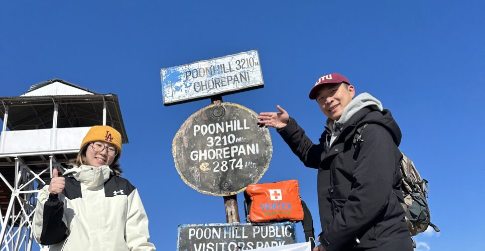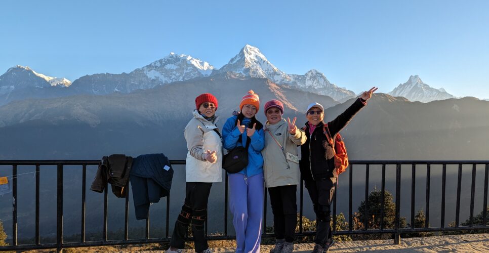 It was my first time trekking and Poon Hill was a unique experience. I loved the villages and  Rhododendron forests, with stunning views of the Himalayas. The beauty of the landscape was truly breathtaking. I’m grateful to guide Santosh who was young and strong as he helped me carry my luggage.