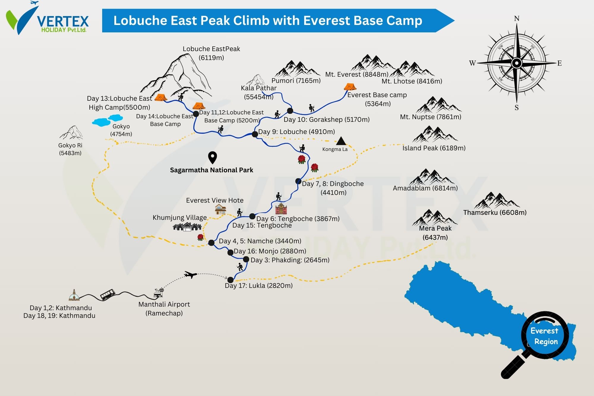 Lobuche East Peak Climb with Everest Base Camp - Route Map