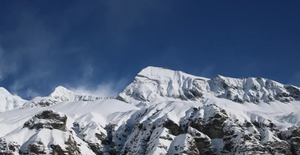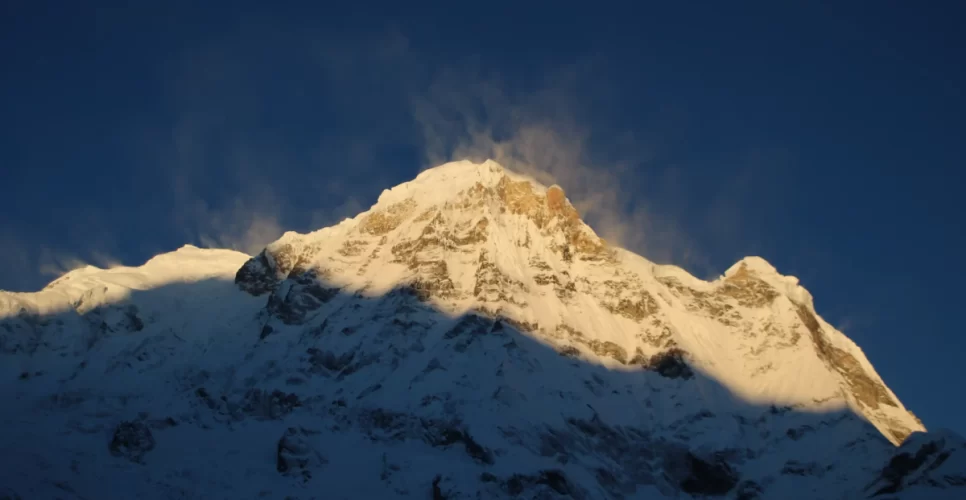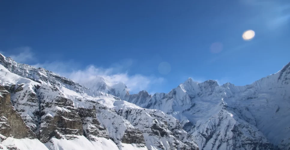 From Himalaya, the Short Annapurna Base Camp Trek trail ascends to Hinku cave, then across the avalanche-prone area to reach Deaurali, following Modi River to Machhapuchre base camp (MBC) 3700m continuing on the alpine meadows to (ABC) Annapurna base camp.
