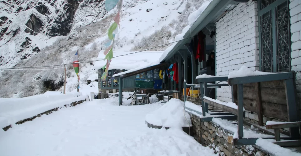 Teahouses and hotels can be found along the walking route for lodging. These offer simple yet cozy housing along with food. You might discover more amenities in larger settlements like Chhomrong.